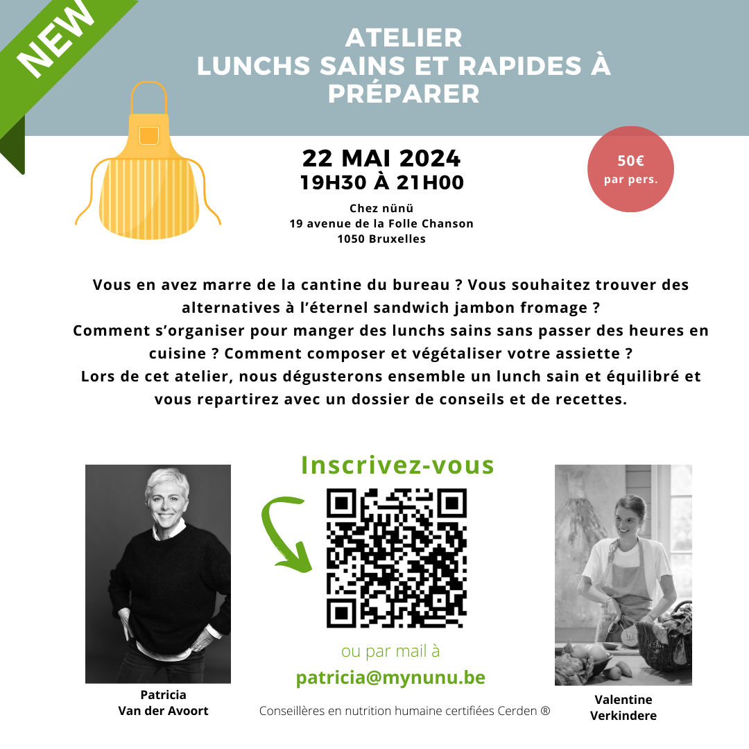 Pour recevoir des articles, des recettes saines et faciles à réaliser et être informé(e) des prochaines activités (conférences, ateliers, …)