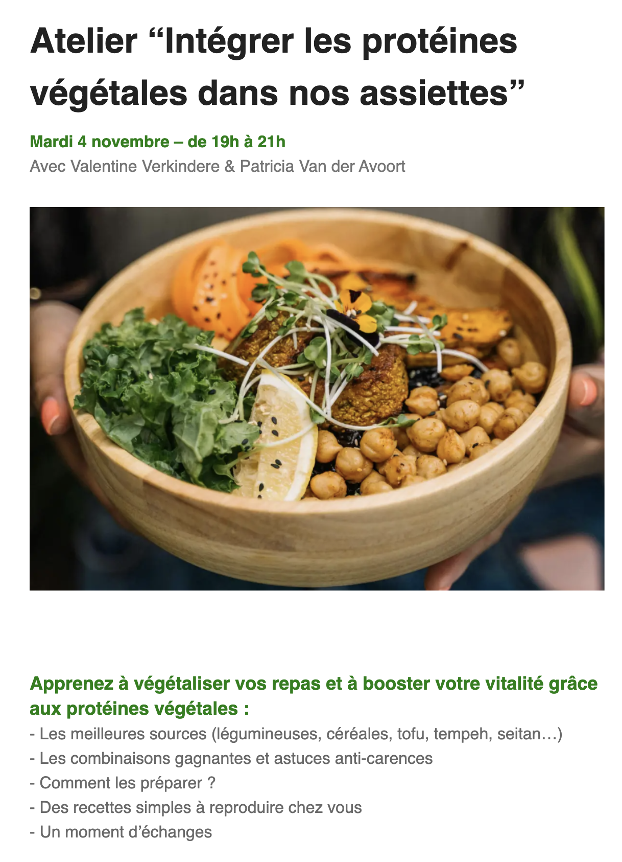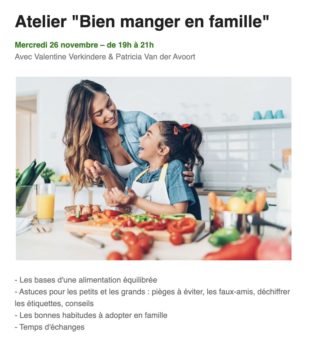 Pour recevoir des articles, des recettes saines et faciles à réaliser et être informé(e) des prochaines activités (conférences, ateliers, …)