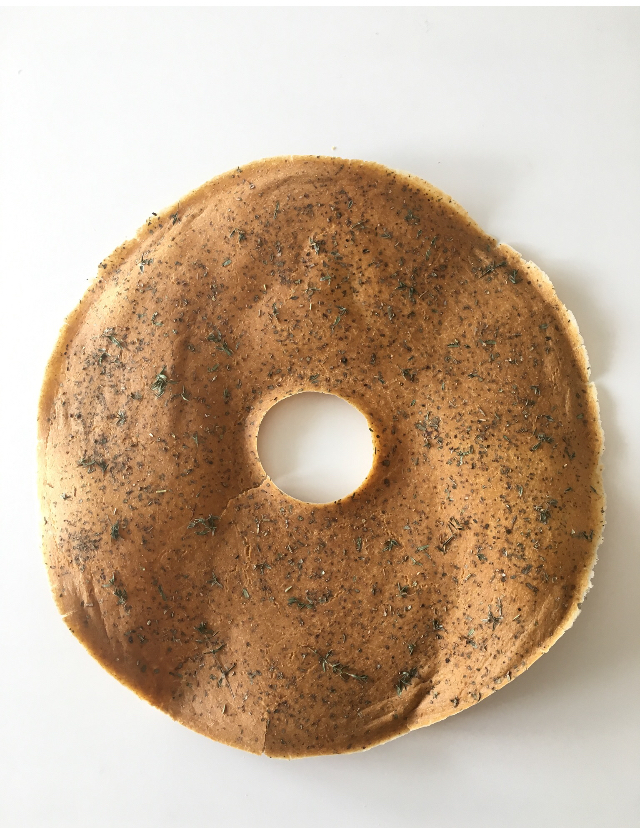 6/ Déshydratez à 50°C pendant 6h, retirez ensuite la galette de la feuille sulfurisée, retournez-la et posez-la directement sur le plateau