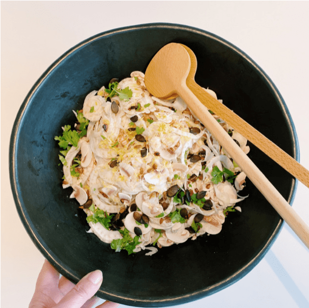 1/ Coupez le fenouil et les champignons à la mandoline